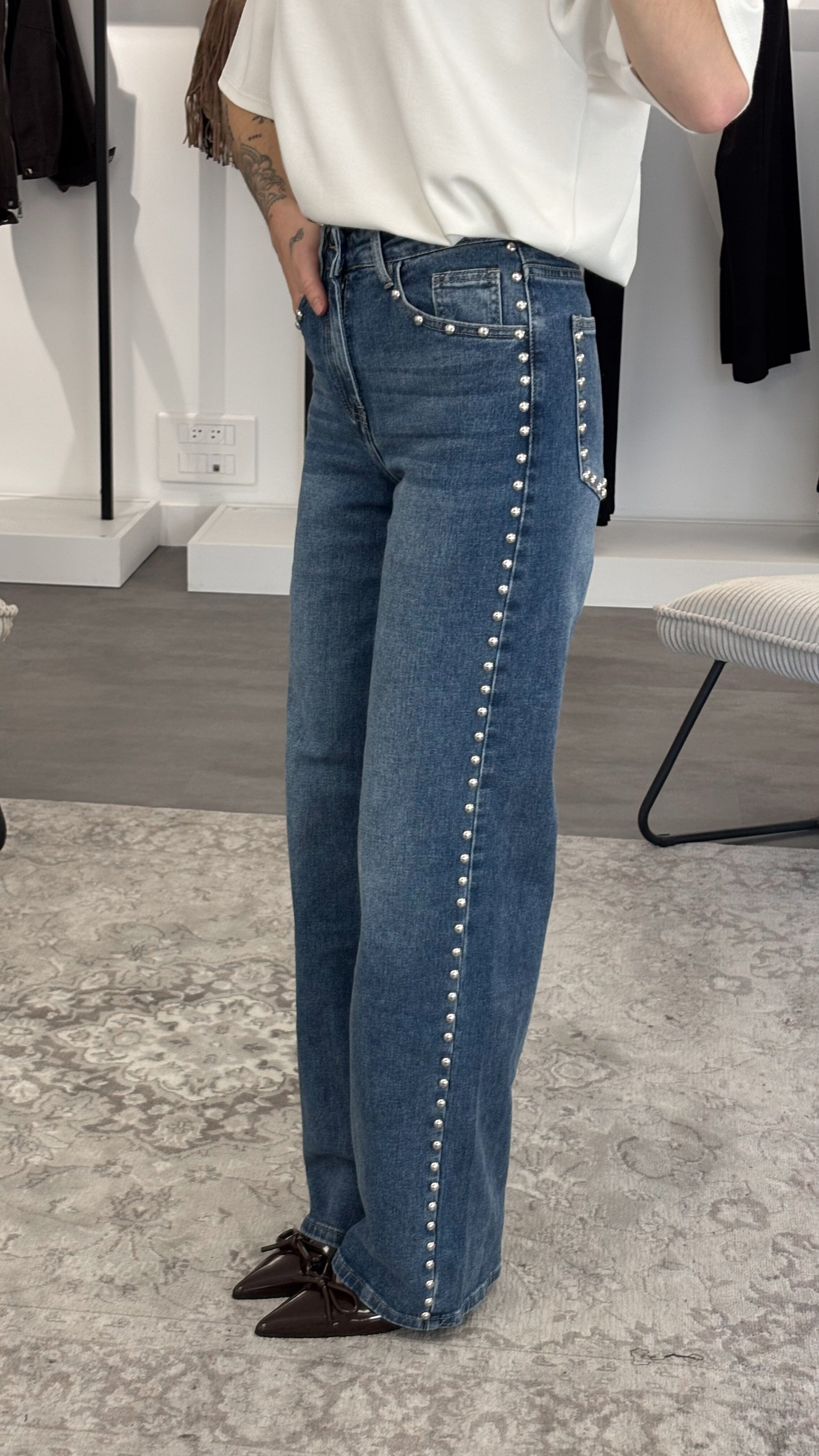 - Orné de clous métalliques argentés